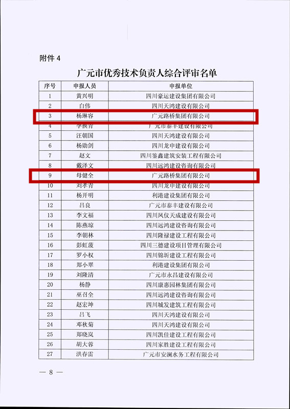 2023年7月1日,尊龙凯时人生就是搏被广元市住房和城乡建设局评为优秀建筑企业;陈文辉被评为“广元市优秀项目经理”;母健全、杨琳容被评为“广元市优秀技术卖力人”。