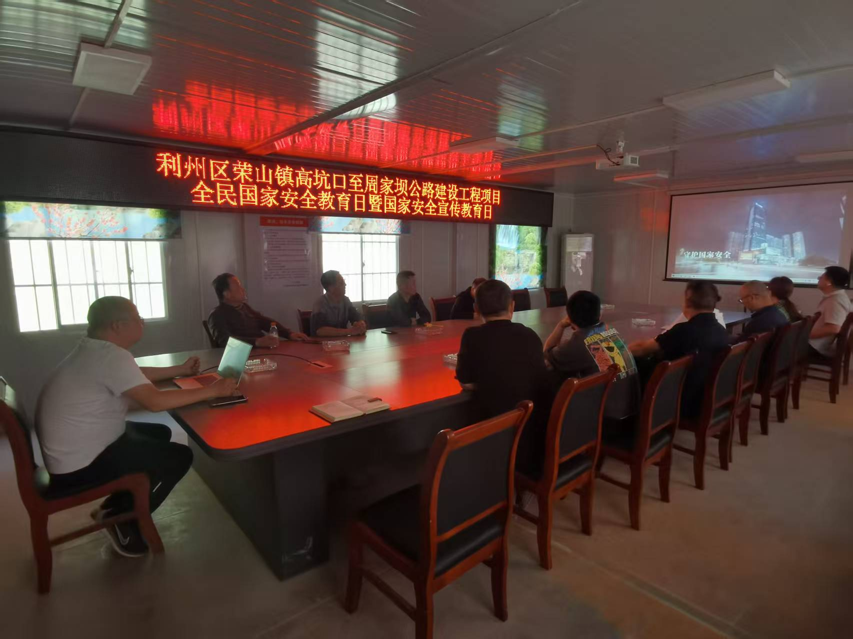 公司各部分干部职工、广元市利州区荣山镇高坑口至周家坝公路建设工程项目部人员寓目警示视频,集中学习国家宁静教育知识