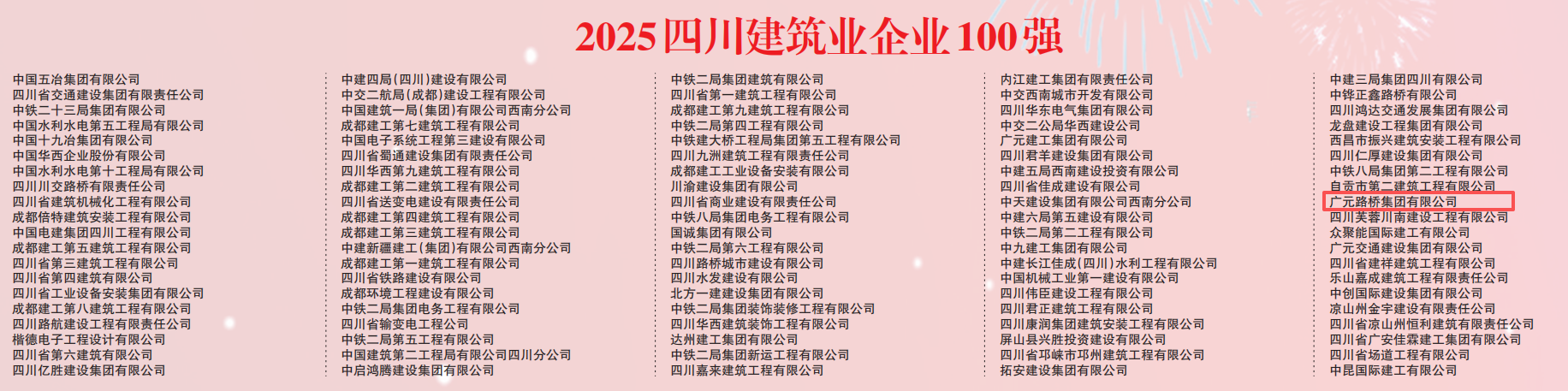 2025年10月23日 ,四川省企业联合会、四川省企业家协会首次宣布2025四川建筑业企业100强名单 ,尊龙凯时人生就是搏集团乐成入围。